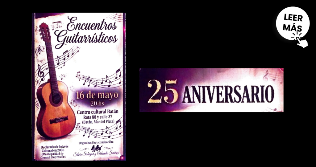 La música y la tradición tendrán una cita destacada en Batán con la celebración del 25° aniversario de los “Encuentros Guitarrísticos”, un evento que se ha convertido en un clásico cultural de la ciudad. La propuesta, organizada y conducida por Silvia Salazar y Orlando Suárez, reunirá a artistas y amantes de la guitarra en una velada especial.