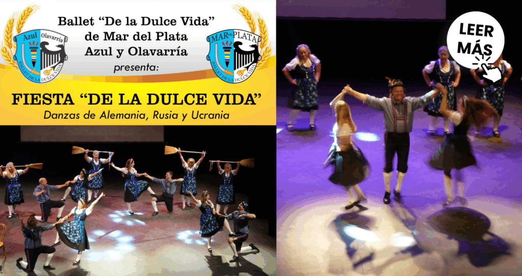 El próximo miércoles 31 de julio a las 21 horas, el majestuoso Teatro Colón de Mar del Plata, ubicado en Hipólito Yrigoyen 1665, será escenario de una noche inolvidable de danza y tradición con la presentación del ballet “De la Dulce Vida”, un espectáculo que une a las ciudades de Mar del Plata, Azul y Olavarría.El espectáculo ofrecerá un recorrido por danzas tradicionales de Alemania, Rusia y Ucrania, fusionando el talento local con la riqueza de las raíces folclóricas de Europa del Este.