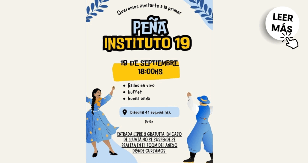 El próximo jueves 19 de septiembre a las 18 horas, el Instituto 19 celebrará su primera peña en la ciudad de Batán, una propuesta pensada para disfrutar de la música, el baile y la buena compañía.