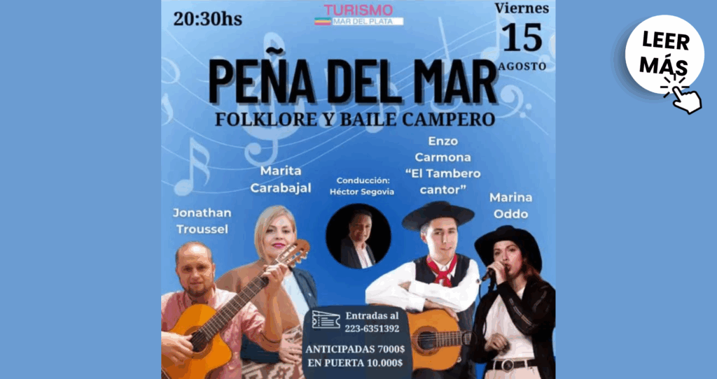 El viernes 15 de agosto a las 20:30 hs, el escenario del Club Social y Deportivo Juan Héctor Jara (Av. Jara 2560) recibirá a grandes artistas del folclore local y regional. El anfitrión de la velada será nada menos que Enzo Carmona, «El Tambero Cantor de Batán», quien compartirá la noche con talentosos músicos y bailarines como Marina Oddo, Marita Carabajal y Jhonathan Troussel. La conducción estará a cargo de Héctor Segovia, reconocido por su calidez y pasión por la música argentina.