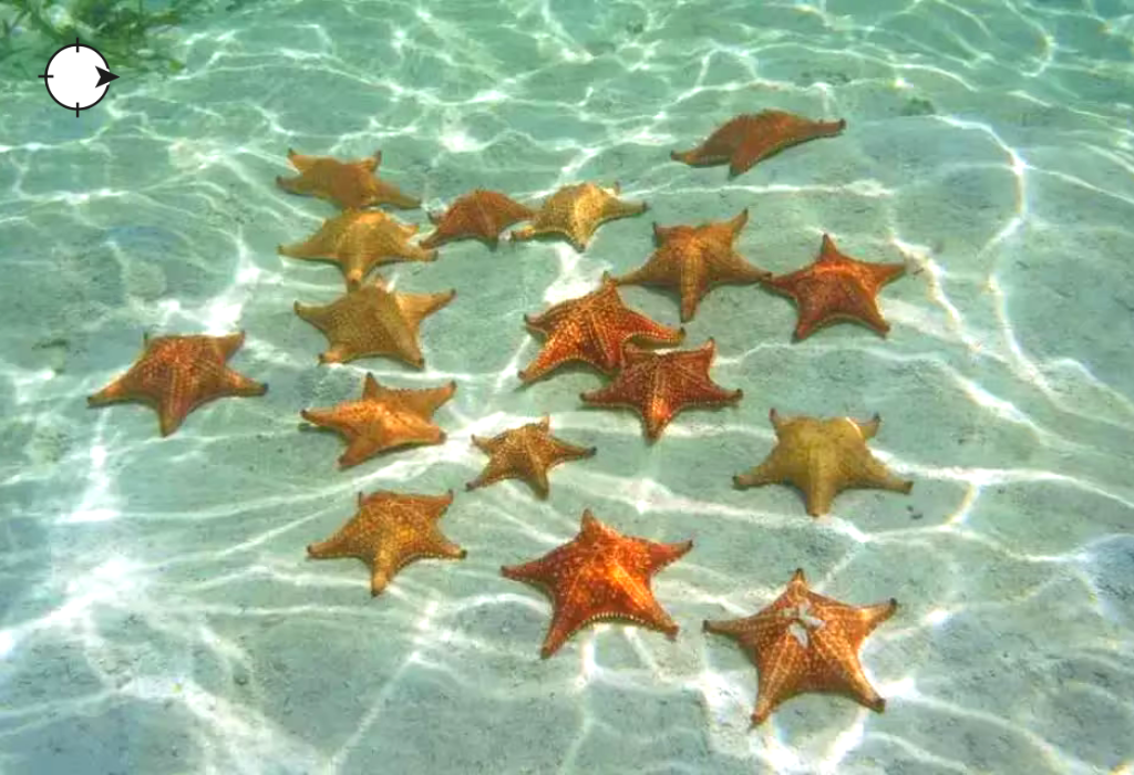 En ciertas playas del Caribe, cuando baja la marea, quedan cubiertas por miles de estrellitas de mar, totalmente indefensas, ya que todavía no han desarrollado su caparazón. Su delicada piel no soporta el calor del sol, se deshidratan y mueren.