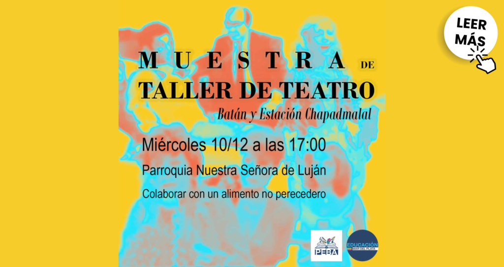 La cultura y el arte local volverán a ocupar un lugar central este miércoles 10 de diciembre a las 17 horas, cuando se realice la muestra anual del Taller de Teatro de Batán y Estación Chapadmalal. El evento, que se desarrollará en la Parroquia Nuestra Señora de Luján, invita a vecinos y familias a disfrutar del cierre de año de los grupos que participaron del espacio formativo.