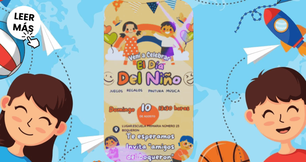 El evento se llevará a cabo en la Escuela Primaria N°23 de la localidad, y contará con una gran variedad de actividades pensadas para los más pequeños: juegos, pintura, música y regalos serán parte de una jornada que promete sonrisas, diversión y momentos inolvidables.