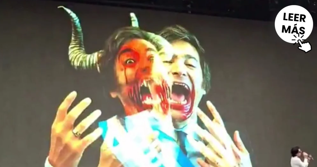 El escenario de una empresa de telefonía celular en el festival Lollapalloza, que se desarrolla en el Hipódromo de San Isidro, fue el centro de una gran polémica luego de que se exhibieran imágenes de Javier Milei con la cara ensangrentada y mimetizándose con la figura de un demonio.