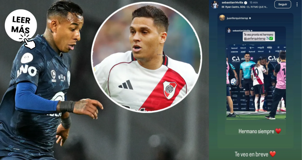 En ese contexto, un intercambio en redes sociales con Juanfer Quintero no pasó desapercibido para los hinchas de River. Todo comenzó con un mensaje del propio Villa: “Te veo pronto, mi hermano”. La respuesta del enganche fue breve pero contundente: “Hermano siempre”.